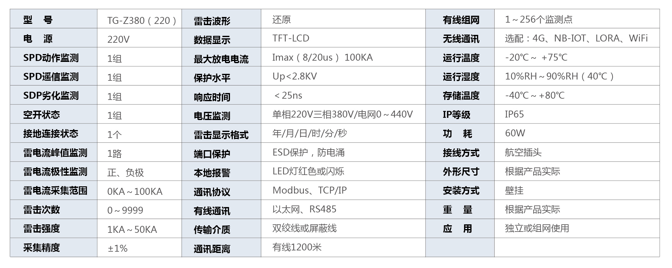 TG-Z380(220)系列智能防雷箱適用于電力能源、軌道交通、石油石化、?;V業(yè)、通信金融、民航高速、國(guó)防軍工、文物景點(diǎn)、政企教育、環(huán)保水利等各行業(yè)重要場(chǎng)所配電系統(tǒng)的防護(hù),同時(shí)實(shí)現(xiàn)防護(hù)及防護(hù)裝置的全生命周期狀態(tài)監(jiān)測(cè),通過(guò)防護(hù)及對(duì)裝置本身的實(shí)時(shí)監(jiān)測(cè)、數(shù)據(jù)記錄與分析,實(shí)現(xiàn)對(duì)防護(hù)裝置出現(xiàn)劣化或失效時(shí)及時(shí)響應(yīng),并做出應(yīng)急解決方案和后期的防護(hù)決策。