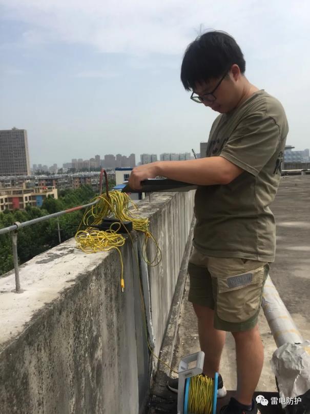 檢測(cè)當(dāng)天氣溫毒高達(dá)30多度,檢測(cè)工作剛開(kāi)始,檢測(cè)人員身上就幾乎被汗水侵濕,驕陽(yáng)下,檢測(cè)人員汗如雨下,他們顧不上抹去汗水,在高溫中不斷測(cè)試?yán)纂姺雷o(hù)設(shè)施,一個(gè)點(diǎn)位一個(gè)點(diǎn)位的記錄測(cè)試數(shù)值。