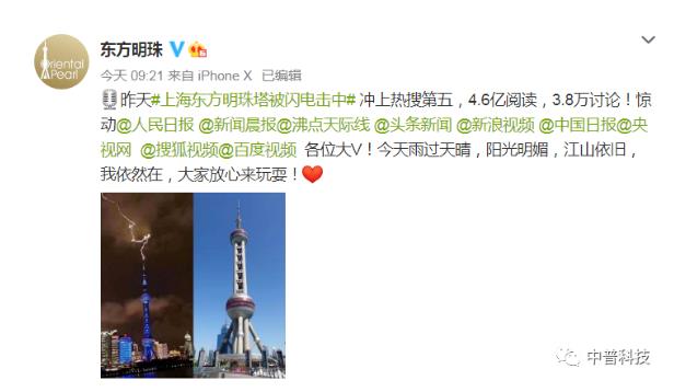 8月11日,記者從東方明珠了解到,8月10日晚,東方明珠所有設(shè)備都顯示正常,沒有被雷電擊中的跡象。網(wǎng)友所看到的,其實是東方明珠的“接閃”場景。所謂“接閃”,是指建筑物主動出擊,吸引閃電,即利用集散裝置(即避雷針系統(tǒng))來引雷,以免建筑物遭到雷擊發(fā)生事故,經(jīng)過權(quán)威部門對東方明珠大樓結(jié)構(gòu)排查發(fā)現(xiàn),大樓整體結(jié)構(gòu)依然很安全,市民大可放心。東方明珠運營方也在微博發(fā)布10日晚和11日對比照片,并邀請“大家放心來玩耍”。